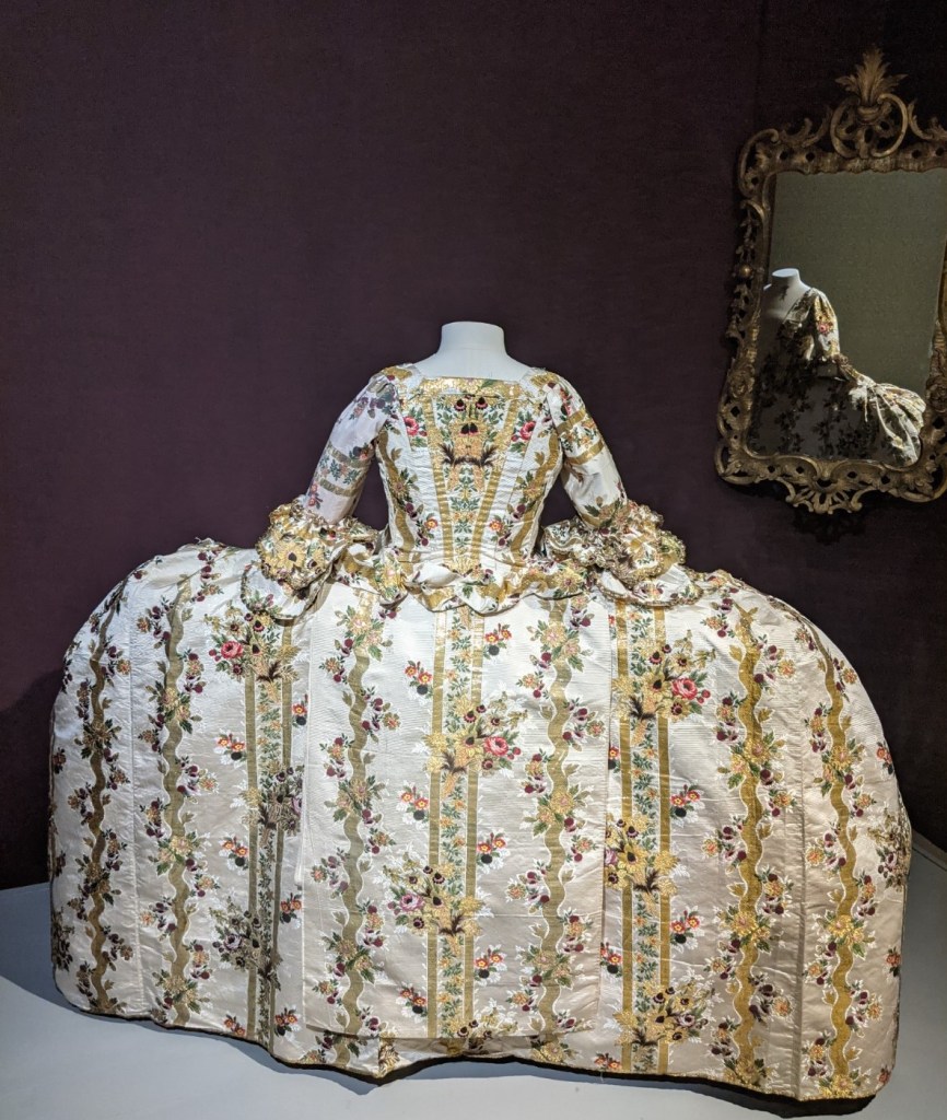 Earlier this week I managed to spend a day at Berrington Hall in Herefordshire. It’s a Georgian mansion with gardens laid out by Capability Brown. Wandering through the rooms and strolling around the plentiful walled gardens was an absolute delight, but what really captured my imaginatiion was a dress. Not just any old dress but one belonging to Ann Bangham, first lady of Berrington. It’s a restored 18th century court mantua dress.