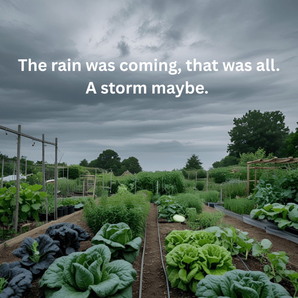 Ursula still had the phone to her ear even though Andi had cut the call. She was looking out of the window at the sky. She’d missed the sunset but that wasn’t what was troubling her. It was the air. It had changed again. She went outside to get closer to it. The rain was coming, that was all it was. A storm maybe. She should go home before it started, but she knew she wouldn’t.